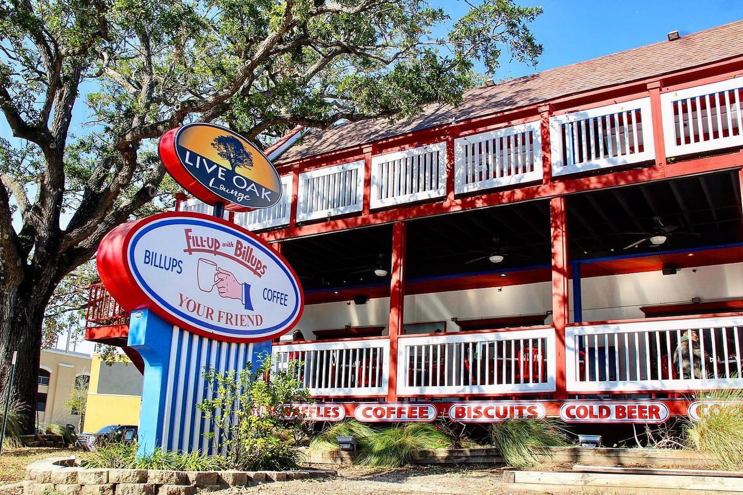 With live music keeping things festive day and night, visitors watch sailboats skim along Lake Borgne as they sip Gator Bait Bushwackers garnished with an entire slice of sugarcane. Menu favorites include conch fritters, coconut shrimp, lobster mac ‘n’ cheese, blackened catch platters, and the Floribbean Fish Sandwich piling golden fried red snapper atop honey mustard slaw between perfectly griddled buns.