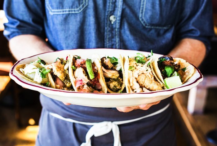 What to Expect: Tacos, burritos and other Mexican staples with creative twists like Baja fish, blackened shrimp, carnitas. Extensive tequila menus. Buzzing social happy hour scene with games. Artsy, colorful decor.