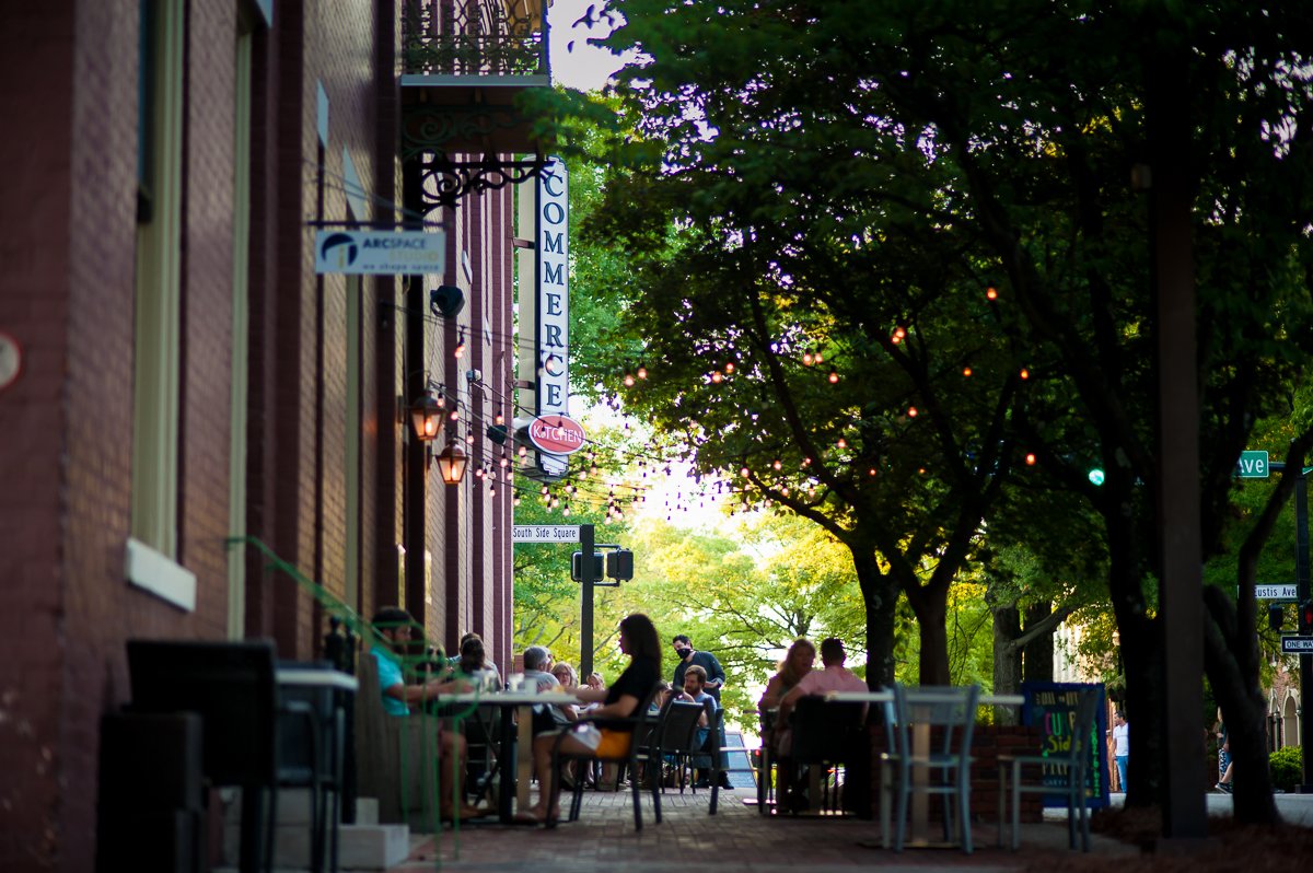 Situated downtown, Commerce Kitchen offers seasonal New American cuisine in a gorgeous old brick and beam building that was once a mercantile shop. The exposed ductwork and Edison bulbs create a hip, laid-back vibe for creative takes on classic comfort food. Chef James Boyce draws inspiration from across the South, resulting in dishes like the award-winning buttermilk fried chicken served with honey hot sauce and blue cheese.