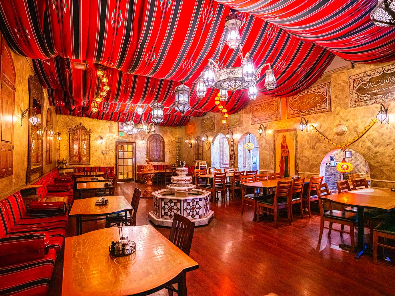 Focusing on Lebanon’s culinary melting pot of Greek, Turkish, Syrian and Israeli influences, the menu brims with meze small plates sharing vibrant dips like hummus, baba ghanoush, and labneh strained yogurt. Larger platters like shawarma wraps, falafel pitas, and kebabs allow for mixing and matching entrees.
